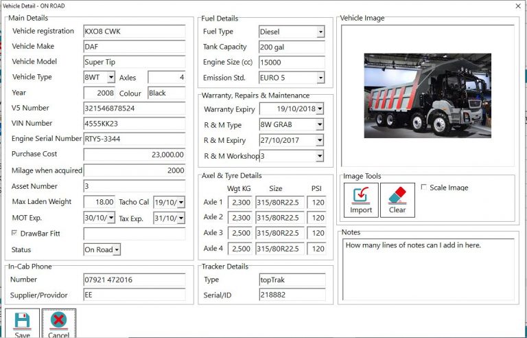 The system is ideal for haulage and plant hire businesses where service scheduling and record keeping is required.